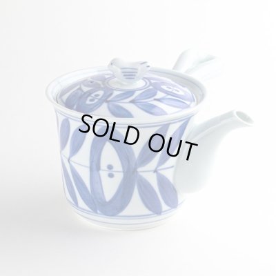 丸みのある形状に、濃淡の美しい呉須で描かれた木の葉模様が映える磁器製の急須です。蓋のつまみには小鳥の細工が施され、見た目にも心和むデザイン。ステンレス製の網茶漉しが付属しており、実用性にも優れています。たっぷり約380ml入り、日常使いにもおもてなしにも最適です。