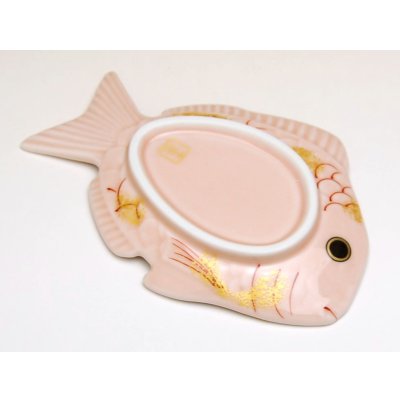 This charming pink sea bream-shaped dish is adorned with golden scales that evoke the festive spirit of spring. Ideal for celebratory occasions such as New Year's, seasonal festivals, or birthdays, it adds a joyful touch to any table setting. Perfect for serving sweets or appetizers, and also makes a lovely decorative piece.